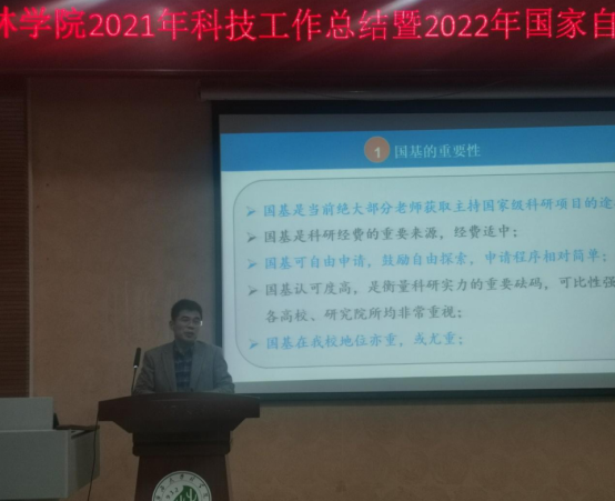 首先,杨梅副院长对林学院“十三五”期间及2021年的科技工作进行了总结,提出学院科技工作存在的主要问题,并向与会教师报告林学院“十四五”科学研究发展核心指标、2022年主要推进的科技工作,并对2022年国家自然科学基金申报做了工作部署。
