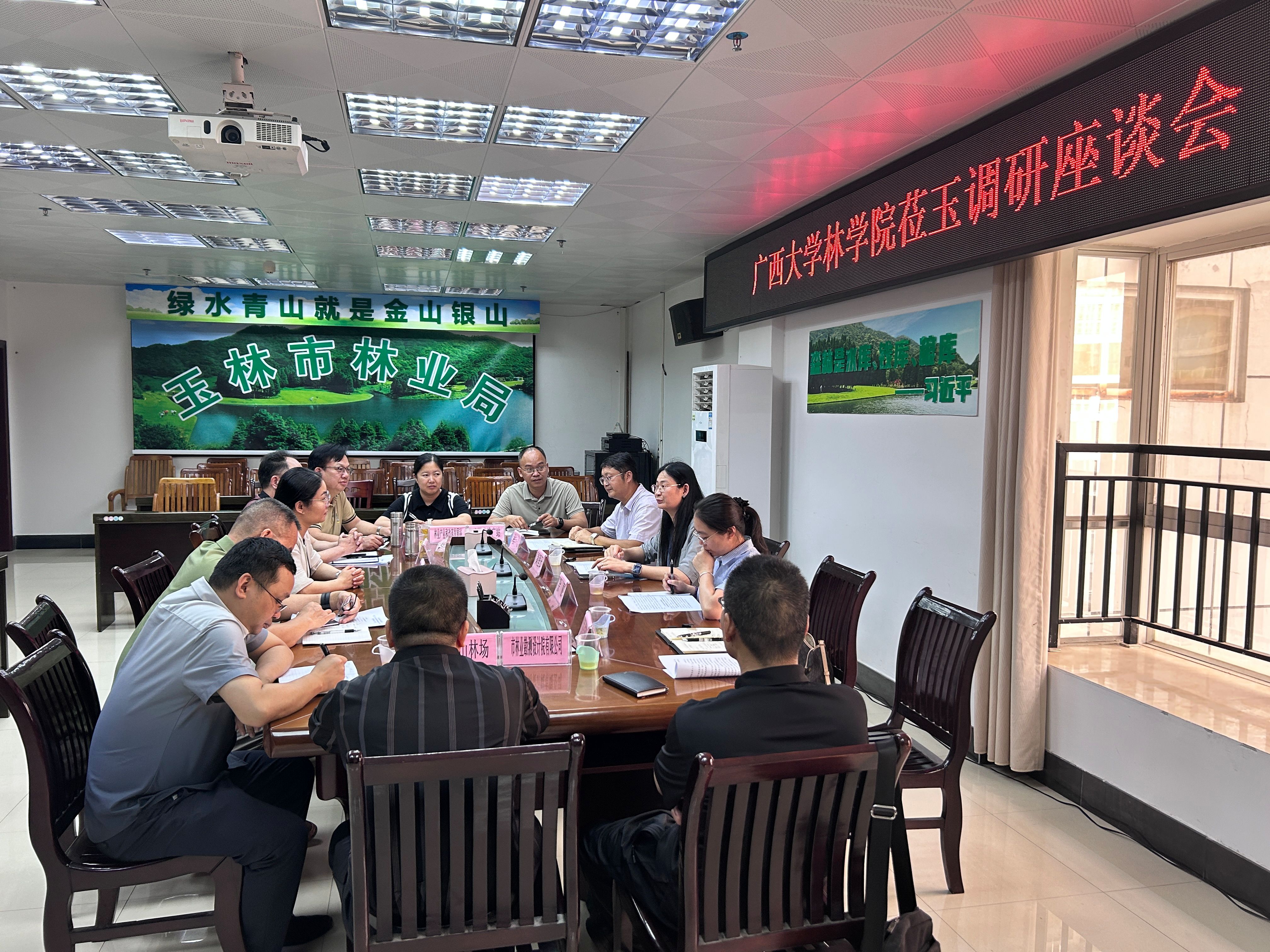 为深化林业人才培养与科研合作,推动产学研用深度融合,5月20日,太阳成集团tyc151cc党委书记黄里云带队,学院党委副书记、纪委书记徐丽,林学系副主任程飞副教授、辅导员林佳佳一同赴玉林市开展调研。