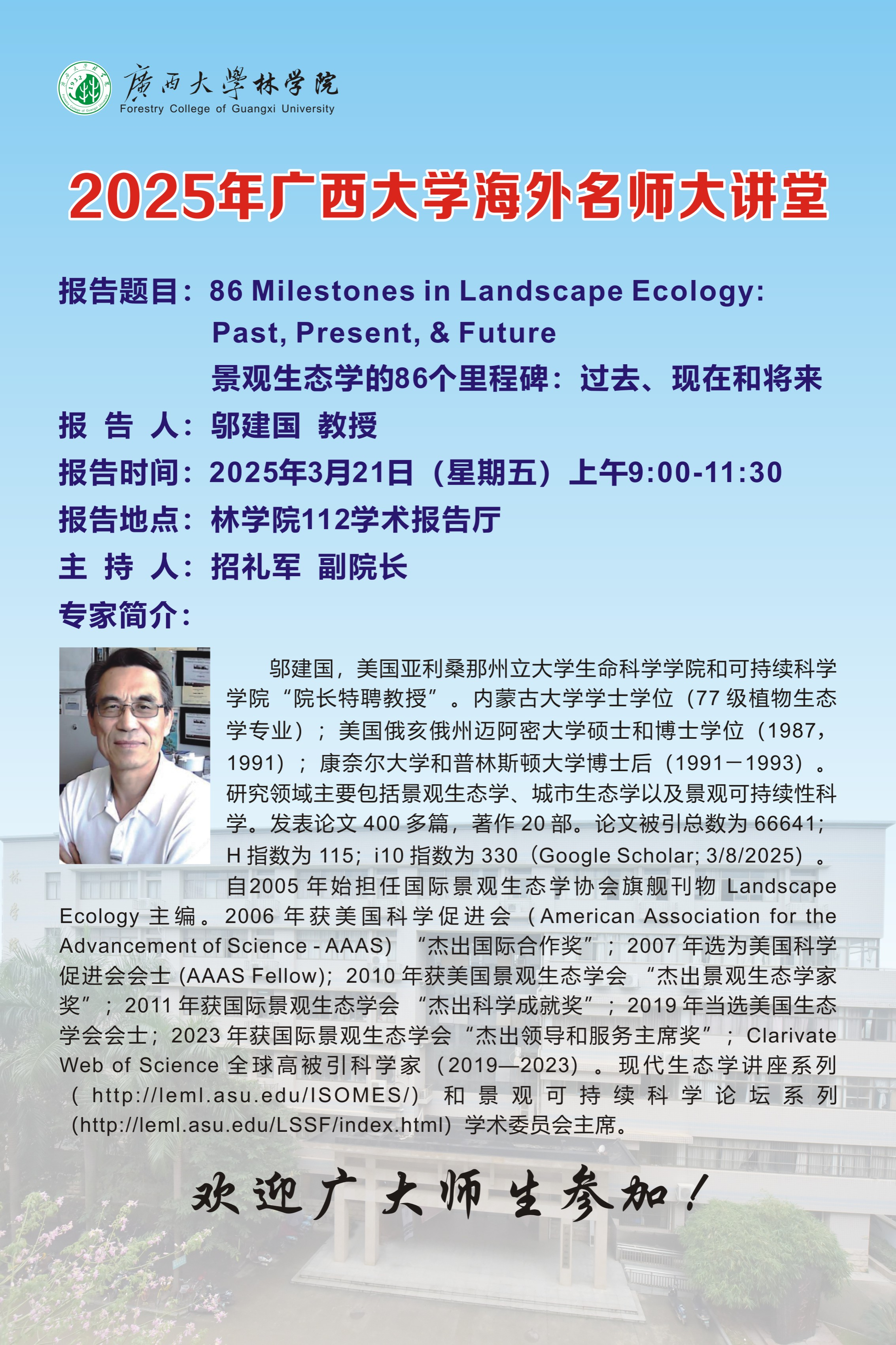 学术报告:景观生态学的86个里程碑:过去、现在和将来