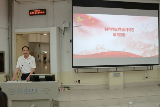 随后,林学本科生党支部熊运凡作为2022年秋季培训班的优秀学员代表上台分享了自己在秋季培训班的学习收获,也向辛勤培育他们的党组织及各位老师衷示衷心的感谢,并承诺将不负韶华、不辜负党的期待、做好党的接班人、人民幸福的守护者,民族复兴的担当者。