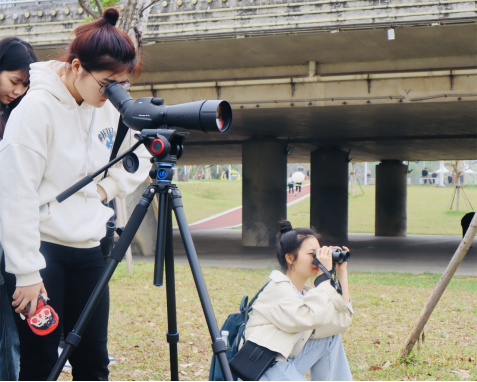 鸟,作为人类的亲密朋友,不仅维持着生态平衡,还助力于农业生产,更为我们的生活增姿添彩。当天,三十余位师生走进城市公园,手拿双筒望远镜观察鸟类活动,寻找鸟类踪迹,并认真记录下它们的外形特点。在单筒望远镜的加持下,师生们近距离观察到正在梳理自己羽毛的鹭和伫立枝头的小鸦鹃(国家二级保护动物),以及珠颈斑鸠、红嘴蓝鹊、鹊鸲、麻雀、灰鹡鸰等湿地鸟类二十余种。