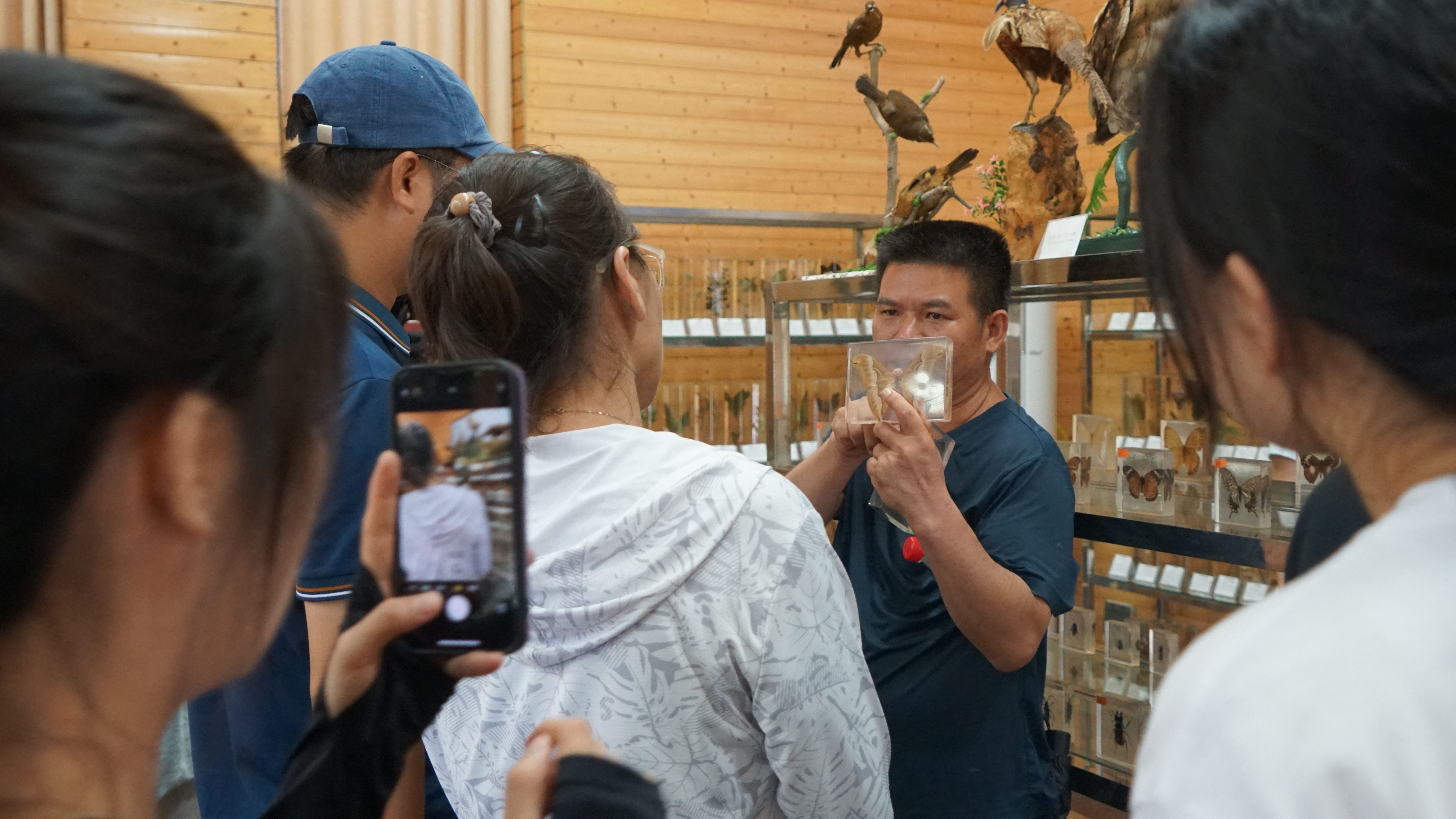 最后,师生们来到大明山动植物标本馆。这里陈列着上百种珍稀动植物的标本,其中,不少动物标本是由警方查获的偷猎贩卖案件所得,它们以另一种形式提醒着人们偷猎行为的残忍与危害。这次参观让师生们深刻认识到濒危野生动植物保护的重要性和紧迫性,更加坚定了他们投身生态保护事业的决心。