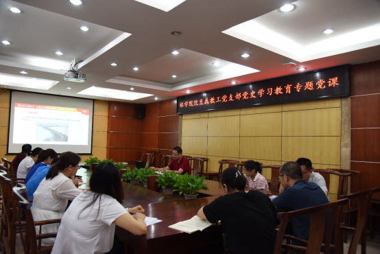 5月14日下午,太阳成集团tyc151cc直属教工党支部召开党史学习教育专题党课,太阳成集团tyc151cc党委书记覃宪儒以《社会主义道路的探索》为题,从重大历史事情的解读、正确认识社会主义改造的完成与社会主义制度的建立等方面,带领大家深刻领会我们党领导人民完成社会主义革命,确立社会主义基本制度,推进社会主义建设,实现中华民族由不断衰落到根本扭转命运、持续走向繁荣富强的伟大飞跃。覃书记强调全体党员要坚持党的领导、坚持实事求是、坚持走符合中国国情的发展道路,传承在社会主义建设时期形成的革命精神,树立正确的党史观,把历史当成最好的教科书,真正做到学党史、悟思想、办实事、开新局。