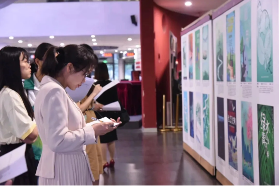 大赛现场共展出38幅海报作品,参赛学子通过手绘画稿、平面设计等方式,结合党的二十大精神,紧紧围绕“深学笃行党的二十大,携手共护生态美”主题,用生动形象的公益海报作品表达生态文明理念。如《生态浪“潮”》作品使用国潮画风的不同元素展现“山水林田湖草沙”风景,旨在传达“人与自然和谐共生”的理念;如《那考河》作品就通过山、水、林等要素讲述一条健康的河流的“必要因素”:清澈见底的水质,人、水与鱼和谐共处。比赛现场,师生们对参赛作品展开热烈讨论,大家纷纷表示画好生态优先绿色发展的“设计图”是林科学子作为祖国绿色工匠的看家本领,更展现了同学们对于生态文明建设的情怀力量。