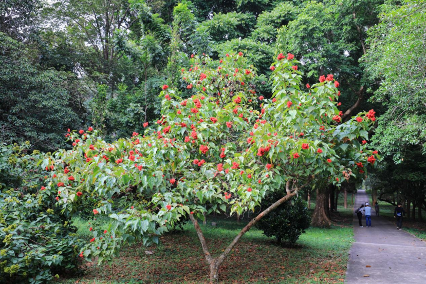 红木不仅具有观赏价值,常被用于园林景观的布置,为庭院和公园增添亮丽色彩,其种子外皮还能提取天然红色素,广泛应用于食品、化妆品、纺织等行业。此外,红木的树皮和根可入药,具有一定的药用价值,能起到收敛止泻等功效。